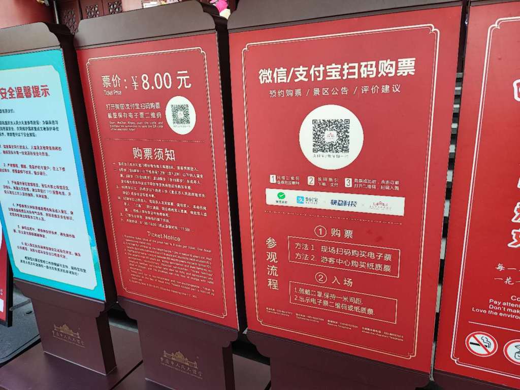 入場料に関しては、主にQRコード決済となります。インフォメーションセンターの前にある立て看板にQRコードがあるのでそれを読み取ってから、チケットを購入します。もしQRコードを読み込むアプリがない場合はインフォメーションセンターに行って、クレジットカードか現金で支払う形となります。